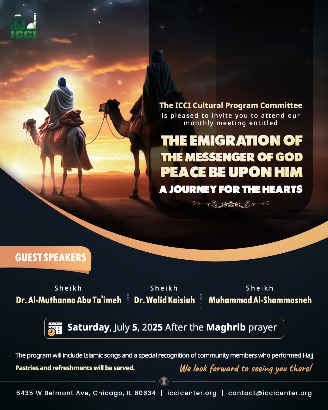 The Islamic Community Center of Illinois, ICCI, is a non-profit organization that was established in 2001. It is located on the Northwest side of Chicago. It includes a Masjid with two prayer halls, a school, a lecture hall, and a youth center.