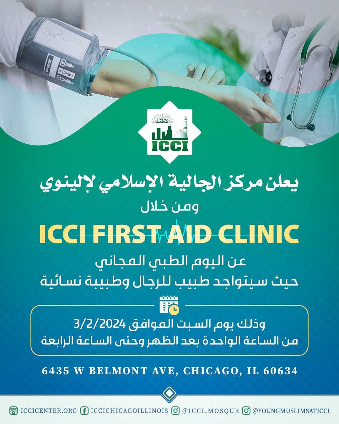 The Islamic Community Center of Illinois’ (ICCI) First Aid Clinic invites you to:
